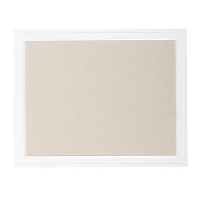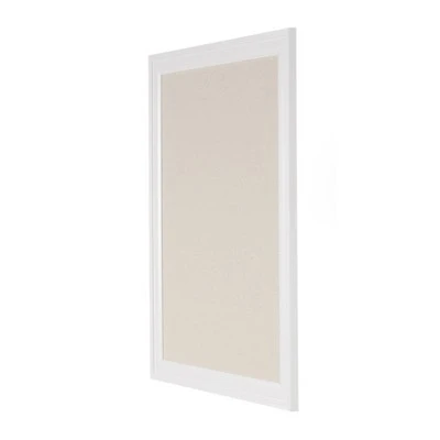 Organize your home or office with this decorative and functional framed linen fabric pinboard. This decorative wall mounted memo board has a soft white linen fabric padded pinboard. Metal d-ring hangers are already attached to the back of the frame for either horizontal or vertical display to fit your needs. The outer display dimensions are 23.5 inches by 29.5 inches by 1 inch deep. The fabric pinboard measures 19.5 inches by 25.5 inches. Use this framed bulletin board for maximum organization in your entry way, kitchen, or home office.