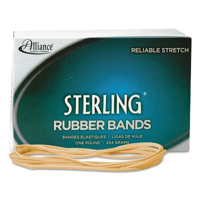 Secure common items like mail, files, and documents with a one-pound box of these Alliance Sterling 7 x 0.13-inch rubber bands. Rely on these natural crepe bands made with high rubber content that helps reduce breakage. These Alliance Sterling rubber bands are ideal for fast application and help to reduce stress on the hands and wrists. Multi-purpose rubber band is perfect for repeated use or fast application. Rubber band size #117B. Bands measure 7″ x 1/8″ and come in a 1 lb. box. Each package comes with rubber bands in natural crepe. Elongation: 750%. 250 rubber bands per box. This product is manufactured by a certified WBE (women owned business). This product is manufactured by a certified SBE (small business enterprise). Sold as 1 Box.