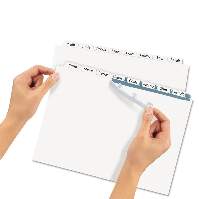 - Get a professional, printed-on look with clear labels that virtually disappear on the white divider tabs. White color for an attractive look. Tear-resistant for safe keeping.