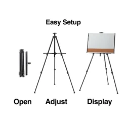 UNIVERSAL Heavy-Duty Instant Setup Foldaway Easel Adjusts 25″ – 63″ High Aluminum Black 43027