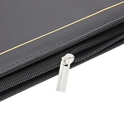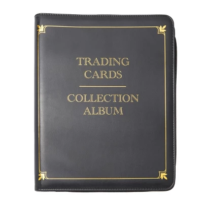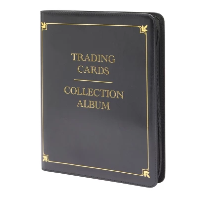 Designed to fit a variety of sports and TCG cards, this black and gold card binder will help keep your valuable collection in mint condition. The PU leather binder features 20 9-pocket sleeves that can store up to 360 of your favorite cards. Our sports card binder has a zipper enclosure to ensure your collection stays in place while traveling. The 3-ring trading card binder with plastic sleeves measures 10.75 x 13.5 x 1.65 inches.