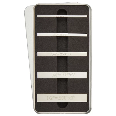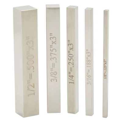 - Dimensions: Each steel block measures 2-1/2 inches long, they range in squared sizes as follows: 1/8 inch, 3/16 inch, 1/4 inch, 3/8 inch, and 1/2 inch