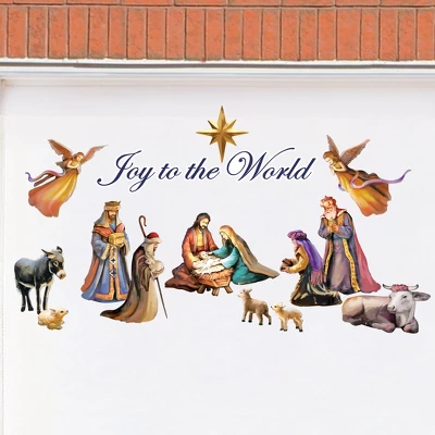Share the spirit of the season with friends and neighbors by decorating your garage door with these delightful magnets. The 14-piece magnet set features a nativity scene including Mary, Joseph, Baby Jesus, two angels, the Three Kings, a shepherd, animals, Christmas star and letters to spell out “Joy To The World”. Magnets adhere easily to your metal door and remove without any residue or damage to be used year after year. Largest magnet is 7 1/2″L x 10 3/4″H.