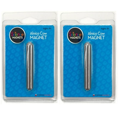 This 3″ long cylindrical magnet is world famous! There’s one inside every cow! You can do all kinds of cool things with a cow magnet, but cow magnets were originally used as a tool to save the lives of cows, which eat everything from grass and dirt to nails, staples and bits of bailing wire (referred to as tramp iron). A cow has 4 compartments in its stomach, and when these tramp iron items work their way through, they cause all kinds of problems, threatening the surrounding vital organs and causing irritation and inflammation, and worse. When a cow swallows a cow magnet, it lands in the first compartment of the stomach, and attracts the stray metal on its way by, holding it in a safe place. Available in single or 2-pack.