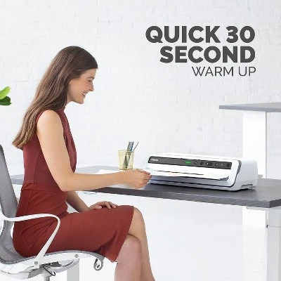- White thermal and cold laminator with pro settings delivers user flexibility for perfect results every time. Features Clean Alert system for jam-free, high-quality results and extends laminator life when cleaned upon prompt. Rapid warm-up in 30-60 seconds with InstaHeat technology. 2-year manufacturer limited warranty.