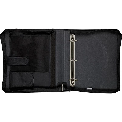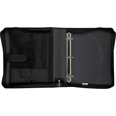 - Durable Polyester. Three 2-inch round rings to securely hold pages. Internal zipper pocket is suitable for holding writing utensils, small calculators, erasers and much more.
