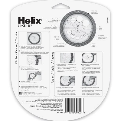 Helix 360� Angle and Circle Maker | The 360� Angle & Circle Maker combines 3 Geometry tools into 1 innovative & exciting product! The 6″ diameter outer ring acts as a classic protractor, while the separate inner circle easily rotates to draw circles just like a compass. And the 8 integrated circle templates built into the inner ring for drawing accurate small circles far easier than using a standard compass. Unique product is much easier for young children to manipulate and use than a standard compass, and the integrated design means that they can more easily understand how angles and measurements correspond with each other. The perfect tool for young students working on mastering geometry and angles! Sold as a pack of 6 in assorted colors: Blue, Teal and Grey (no color choice).