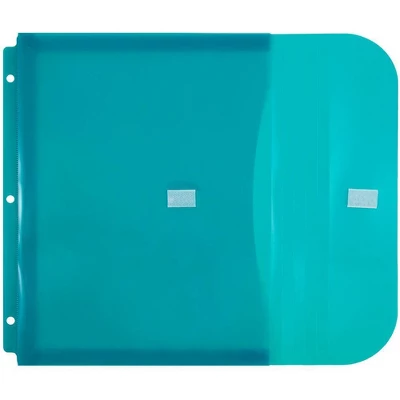 JAM Paper Teal Letter Booklet Plastic Binder Envelopes with Hook & Loop Closure and 3 Hole Punch are 9.75 x 13 inches in size and have a 1 inch expansion. This pack includes 12 envelopes. Their Hook & Loop Closure provided secure closing and easy opening. Each one has 3 binder rings in the bottom spine so that it can be easily placed and kept in a standard sized binder. They are ideal for standard sized documents and small office supplies. Do you have important papers that you would like to keep in a binger, but cannot put holes in? These envelopes are the perfect solution! Their sea blue color is sure to make your documents stand out to be found easily. They are made of durable, plastic that will protect your documents from bending, ripping, stains, and other damage. Carry papers and supplies in your binders safely and conveniently with these teal envelopes!
