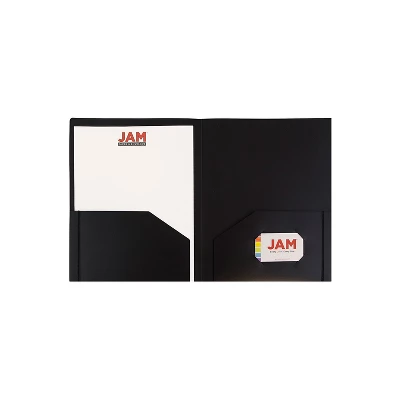 JAM Paper Black heavy duty pocket presentation folder in a box of 108 provides slots for business cards and has dimension of 9 1/2″ x 11 5/8″. JAM Paper Black Heavy Duty Plastic Two Pocket Presentation Folders are 9x 12 inches in size when closed and are ideal for reliably storing and protecting standard sized documents. Made from heavy duty plastic and, these jet black folders are ideal for any professional, academic, or home-office setting. This pack includes large pack includes a total of 108 folders. Each one has two pockets on the inside, with one on each side. The pocket on the right side includes a business card slot. Live a life of security, organization, and mystery and emphasize these qualities by using these sleek black folders to keep and carry your documents!. Used for outdoor job sites, school, or the office. Size: 9″ x 12″. Some have slots for CDs too, making them great for presentations and press kits. Material: Plastic. Can support up to 100 pieces of standard letter size paper. Made from tear resistant and water resistant reinforced plastic making them truly heavy duty. Paper weight: Heavy duty. Finish: Smooth. 2 pocket. Usage: Outdoor job sites, school, or the office. 108 per box. Sold as 108/Box.