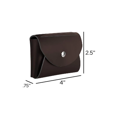JAM Paper Business card case with round flap measuring 2 1/2″” x 3 1/2″” x 3/4″” is made of dark brown Italian leather for durable use and features a snap closure for safety. JAM Paper Italian Leather Business Card Cases are professional while still being stylish! These sleek, dark brown leather cases feature a round flap and have an easy- to-use snap closure, to ensure that everything stays put. The leather is made of 80% natural regenerated leather and 20% natural rubber, so they have a smooth finish. They measure 2 1/2 x 4 x 3/4 inches and can accommodate up to 20 standard size business cards. Use when your attending conferences, corporate events, career fairs, or even just at the office! These cases are sold individually. Material: Italian leather. Dimensions: 2 1/4″”(H) x 3 1/2″”(W) x 3/4″”(D). Portfolio closure: Snap. Portfolio flap: Round. Finish: Smooth. Leather card cases are perfect for women. 80% regenerated leather and 20% natural rubber. Sold as 1 Each.