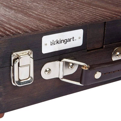 Whether you are a seasoned artist or a beginner, this easel art box by KINGART™ is the perfect storage solution for your art supplies. Featuring an adjustable easel that can hold canvases of varied size, this compact art box is ideal for your on-the-go projects. It’s lovely brown finish adds an elegant, vintage charm to this box.