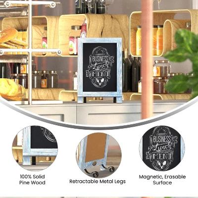 Elevate your decor for special occasions or upgrade your everyday with this set of 10 magnetic chalkboards. Scrolled metal legs fold out to make this a tabletop message board or retract so the memo board becomes wall hanging. Made from solid pine wood construction and suitable for liquid or traditional chalk, the non-porous porcelain steel chalkboard surface cleans easily with a damp cloth.