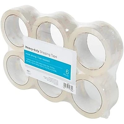 Heavy Duty Shipping Packing Tape, 1.88″W x 54.6 Yards, Clear, 6 Pack (52193). Hot melt adhesive tape holds strong for your shipping needs. 1.88″ x 54.6 yds. Hot melt adhesive with 2.6 mil thickness. 6 Rolls/Pack. Sold as 6/Pack.