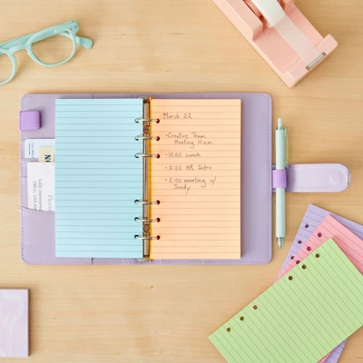 - A6 Planner Inserts: This A6 binder paper comes in 6 assorted colors including green, orange, blue. pink, purple, and yellow; allowing you to easily color-code your notes, plans, and lists