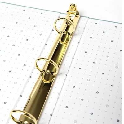 This premium mini 3 ring binder features gold toned hardware, metal-reinforced corners, a gold foil-stamped spine and a full wrap subtle-shier textured bookcloth cover. With new, larger 1 inch rings these binders can accomodate more pages and inserts than ever before.