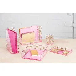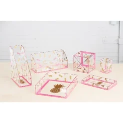 Deflect-O Deflecto Desklarity 5-Piece Desk Set Precisely Pineapple Pink/Metallic Gold (DEF-41695)