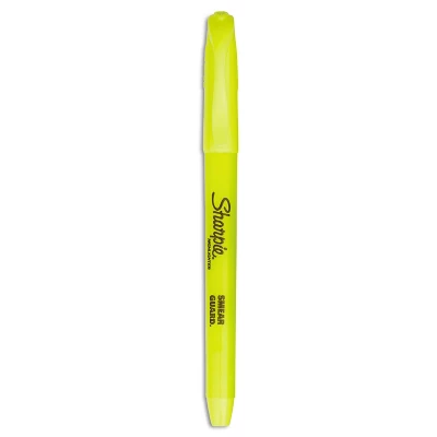 Fluorescent yellow Sharpie pocket highlighters draw attention to important information. Get your point across with these Sharpie pocket highlighters that let your text stand out. Fluorescent yellow ink is clearly visible and does not smear or smudge on your documents, making these highlighters ideal when you need to mark important texts or passages. Vivid, fluorescent yellow shade adds colorful emphasis to highlighted text. Easy-glide, narrow chisel tip is great for highlighting, underlining or writing notes. Resists smearing of many pen and marker inks (let ink dry before highlighting). User-friendly, quick-drying, and odorless AP certified formula. Includes: 36 Fluorescent Yellow highlighters. Perfect for when info is high priority and precision is a must, Sharpie Pocket Highlighters make everything highly visible. These versatile highlighters are designed to fit effortlessly in your pocket or clip to your shirt, so they’re easy to take with you anywhere. With brilliant colors in transparent, quick-drying ink and an easy gliding chisel tip that highlights and underlines both wide and narrow lines of text, Sharpie highlighters make your most important thoughts and notes jump off the page in an array of easy-to-read shades. It’s no wonder why Sharpie is the gotta have highlighter for travel itineraries, camping checklists, escape plans, and the rest of life’s major high points.