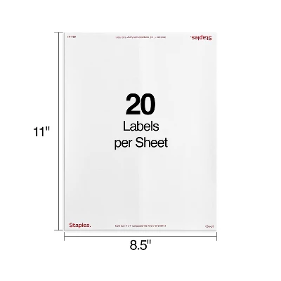 Give envelopes a custom look with these Staples white 1 x 4-inch inkjet/laser address labels. Ensure your company’s envelopes are easy to read with these Staples inkjet/laser address labels. Adhesive backings affix securely to your mailings, and the white color creates a neutral background for your custom designs. These Staples inkjet/laser address labels offer compatibility with Microsoft Word, WordPerfect, Avery LabelPro and a host of other popular design programs, providing convenient access to templates and designs. These address labels make your most important messages stand out. Individual labels measure 1″H x 4″W. White color for an attractive look. Features a permanent-adhesive backing for a secure bond. 20 labels per sheet, 100 sheets per pack; 2000 total labels. Compatible with laser and inkjet printers for maximum flexibility. Sold as 2000/Box.
