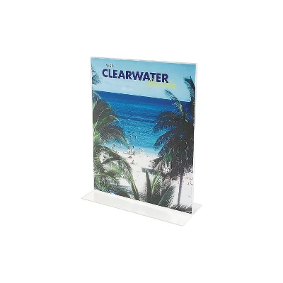 Display specials, policies and announcements with this Staples 8.5 x 11-inch vertical stand-up sign holder. Choose this Staples vertical stand-up sign holder for displaying important policies, specials and announcements. This sign holder is constructed with sturdy, transparent plastic, ensuring that inserted literature is kept safe and easy to read. This Staples vertical stand-up sign holder can be loaded through the bottom with ease, and the sturdy base lets it stand on desks or counters on its own. Sign desktop holder lets you conveniently display signage to ensure maximum visibility. Clear plastic make for durability and better visibility. Holds pages with portrait orientation; bottom loading. Designed to hold display literature that measures 8.5″”W x 11″”H. Double-sided design lets you display and highlight information on both sides. Can be placed on desktops for easy viewing. The Staples stand-up vertical sign holder is designed so that you can easily display a letter-size document or sign in a way that will get it noticed. It is ideal for introductory brochures about your business or for displaying internal information ranging from rules to staff dining menus. Versatile There are many uses for this Staples stand-up vertical sign holder. You can use it in your waiting room to display information or offers to clients, and you can use it in your office or common areas to display staff notices. It is also very useful when you need to display a brochure at a trade show or demonstration. Easy to Use You can easily insert your document at the bottom of the sign holder. The sign holder is clear, so everyone will be able to see your document. Convenient The Staples stand-up vertical sign holder has a steady base, so you can easily set it down on any flat display surface. The letter-size stand will hold a large and easily visible standard-size paper document. Sold as 1 Each.