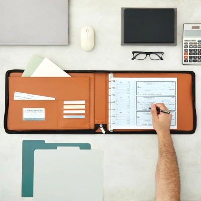 Stockroom Plus Brown 7 Ring Business Checkbook Binder With Zipper For Checks, PU Leather, 15 X 11 X 2 In