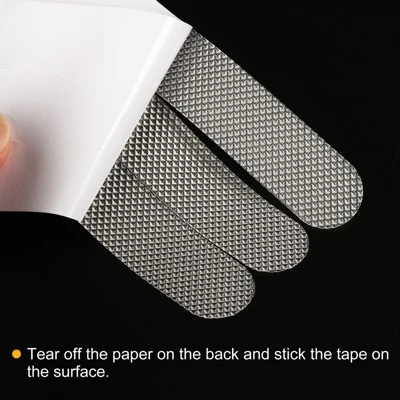 This anti-skid tape creates traction and prevents slipping on stairs, floors, skateboards, tubs, bathrooms, kitchens, locker rooms, and other places that need step treads.Advantage:1. This non-slip strap is soft and tough and comfortable on bare feet, creating a safe environment. It is lightly textured for improved traction and stability.2. It is waterproof and low temperature resistant and can be used indoors and outdoors, such as on a boat, swimming pool and anywhere wet.3. It has strong adhesion and forms a strong bond to any smooth surface. It peels easily without leaving any residue and protects the surface.Instruction:Tear off the paper on the back and stick the tape on the surface of the object. Use a small scraper to squeeze out air, which can make them fit more stable.NOTE:Before installation, it is necessary to clean the dust and particles on the surface to be attached, and then paste the anti-skid strip after the surface is completely dry. It is best to complete the fit at one time, do not move it repeatedly, which will affect the stickiness. After sticking, try not to touch water within 24 hours.