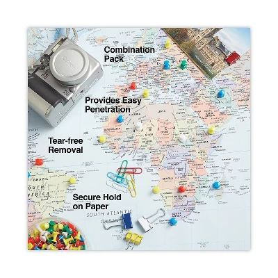 - Includes 46 binder clips, 280 push pins, and 380 plastic coated paper clips.