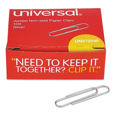 Economical clips keep papers in place without sliding. Choice of nonskid or smooth finish; hold paper tightly without tearing. Clip/Clamp Type: Paper Clips. Color(s): Silver. Material(s): Wire. Capacity (text): N/A. Economical clips keep papers in place. Economical clips keep papers in place without sliding. Choice of nonskid or smooth finish; hold paper tightly without tearing. Nonskid Paper Clips hold papers securely. Size: 1.75 in. Holds about 20 pages. Color : Silver, Material : Wire. Pack of 10 boxes, 100/box. Sold as 1000/Pack.