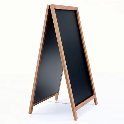 Command instant attention, especially on crowded sidewalks and busy streets. Designed for extreme durability, the solid pine framed chalkboard weighs nearly 20 lbs, 1.5x heavier than similar chalkboards, preventing damage by strong wind or accidental bumps on crowded streets. Weather resistant frames are coated with waterproof wood sealant to resist harsh conditions including rain, snow, and extreme temperatures. Plastic feet provide extra stability on uneven surfaces and prevent the chalkboard standing sign from scratching floors. Guaranteed never to ghost or stain when used with VersaChalk liquid chalk markers.