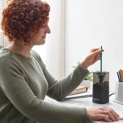 Spend less time sharpening and more time writing with the X-ACTO® Powerhouse® Pencil Sharpener. This electric pencil sharpener comes with a flyway cutter that prevents oversharpening and keeps pencil tips precise for less breakage. The innovative design of this heavy-duty sharpener provides visibility to the cutter blades, while the anti-clog cutter gear makes it perfect for colored pencils. A slip-resistant bottom keeps the pencil sharpener steady when in use. Finally, the SafeStart® electric motor stops when the large, easy-to-empty shavings bin is removed. Stay sharp with X-ACTO®, the #1 electric pencil sharpener brand!